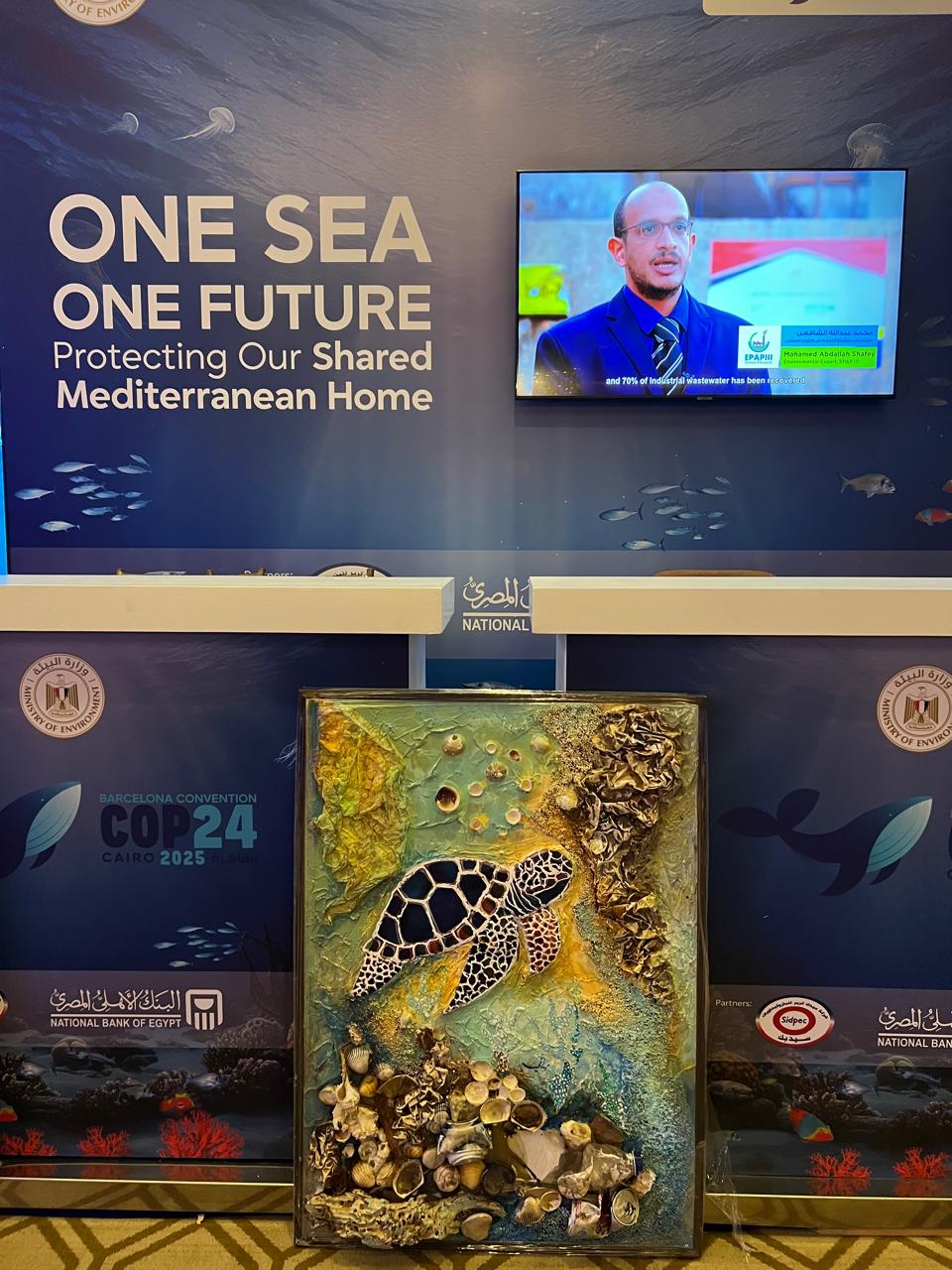 القاهرة، 2 ديسمبر 2025 - شاركت مبادرة "اصنع أخضر مع د. عائشة بدوي" بمعرضها الفني الثامن، والمبتكر للفن الأخضر المستدام، الذي أقيم بركن وزارة البيئة المصرية في الاجتماع الرابع والعشرون للأطراف المتعاقدة في اتفاقية حماية البيئة البحرية والمنطقة الساحلية للبحر الأبيض المتوسط وبروتوكولاتها.