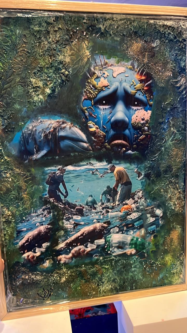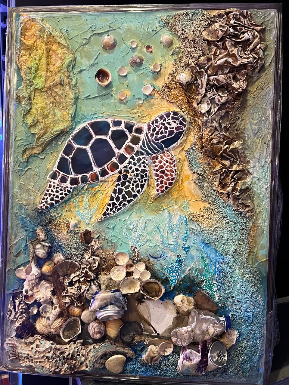 ويتضمن المعرض أعمال فنية مبتكرة من تنفيذ مجموعة من الفنانات التشكيليات المصريات بمبادرة أصنع أخضر، ومنهم: الفنانة التشكيلية د. عائشة بدوي، والفنانة التشكيلية أماني عبد الفتاح، والفنانة التشكيلية رانيا نبيل، والفنانة التشكيلية هاجر إسلام، وغيرهن من الفنانات المبدعات اللواتي قدمن أعمالهن الفنية باستخدام مواد معاد تدويرها، حيث تُظهر اللوحات الفنية تأثير التلوث على البيئة البحرية والكائنات البحرية المهددة بالانقراض.