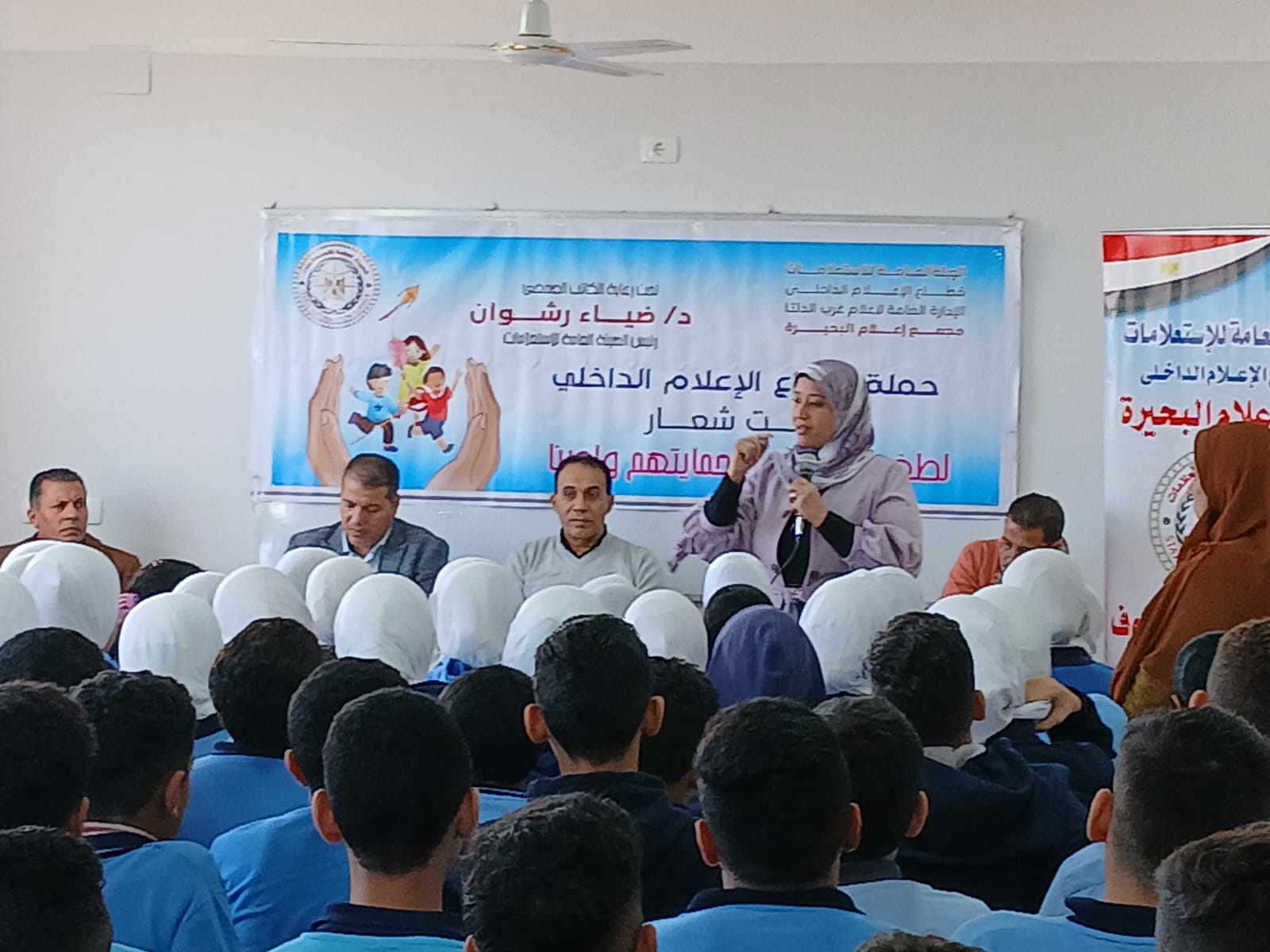 حمايتهم واجبنا ) نظم مجمع اعلام البحيرة ندوة توعوية حول ( الطفولة الآمنه وكيفية حمايتها من التحرش ) بمدرسة أحمد جلال الإعدادية المشتركة بقرية اريمون بالمحمودية .