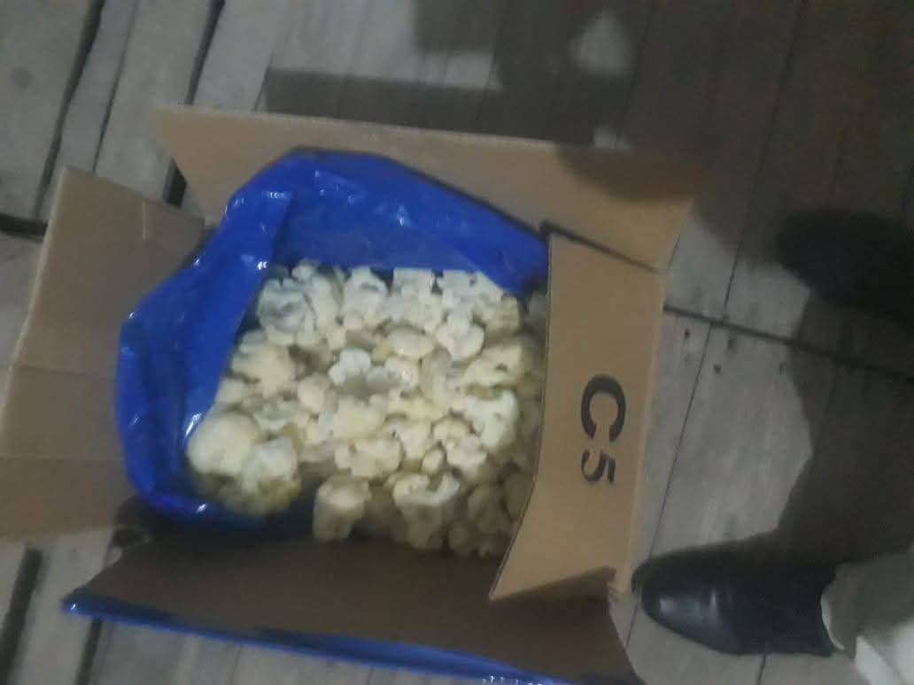 # تم ضبط عدد 2100 كرتونة قرنبيط مجمد ، بإجمالي وزن 21 طن ، بداخل أحد ثلاجات حفظ وتخزين وتجميد الخضروات ، غير مدون عليها أي بيانات تخص المنتج أو تواريخ الإنتاج و الصلاحية مجهولة المصدر ، وتم تحرير محضر ضبط بذلك ، وتم قيد المحضر برقم جنح قسم شرطه كفر الدوار لسنة 2025 ، وللعرض على النيابة العامة للتصرف .