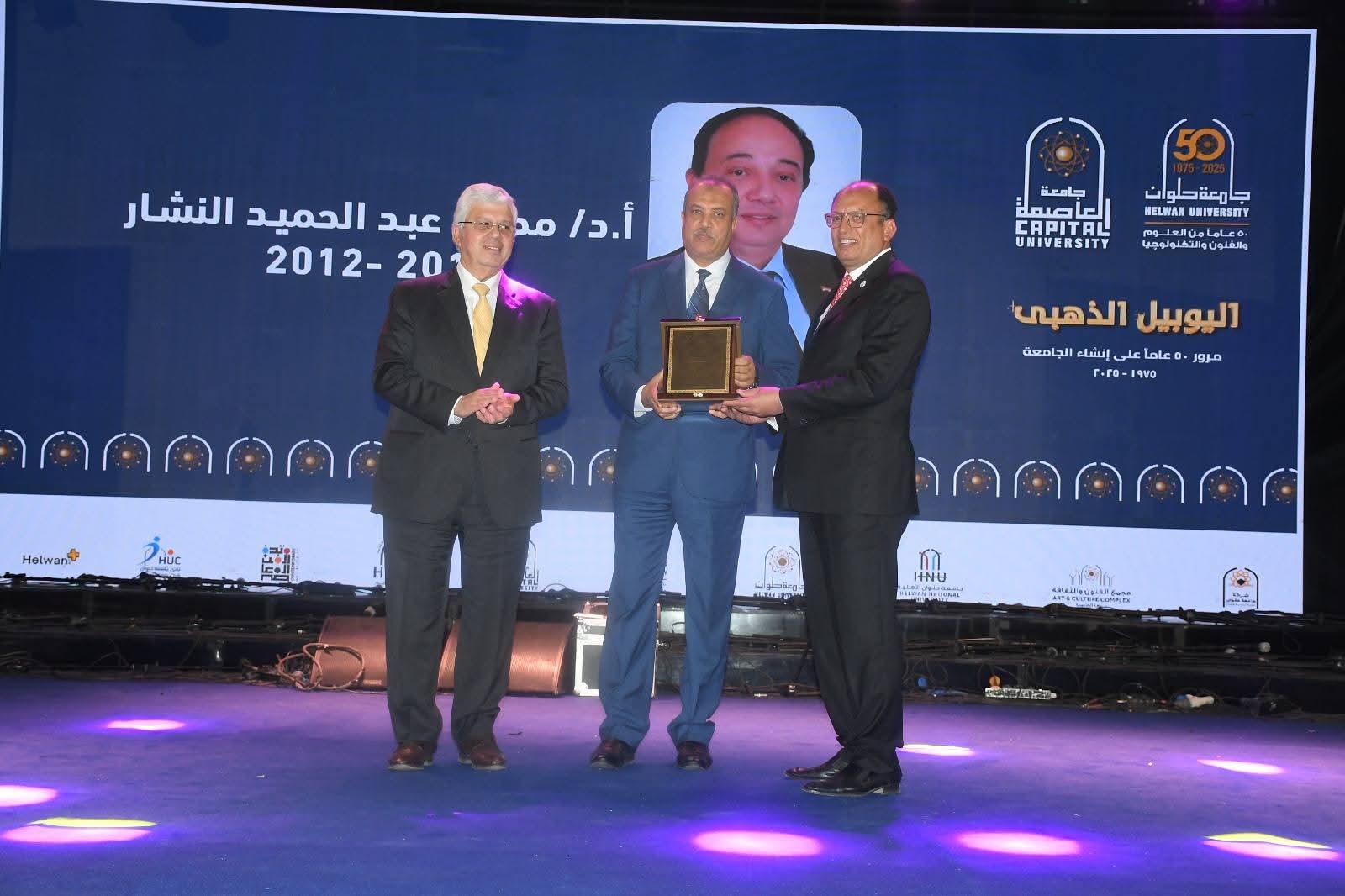 ومن جانبه، أكد د.أيمن عاشور أن احتفال اليوم بمرور 50 عامًا على تأسيس الجامعة، التي بدأت باسم جامعة حلوان، وأصبحت اليوم جامعة العاصمة، يمثل تقديرًا لمسيرة حافلة بالإنجازات الأكاديمية والعلمية وخدمة المجتمع، مشيدًا بدور الجامعة في دعم التنمية وبناء الإنسان المصري، كما أبرز إسهامات خريجيها من وزراء ومسؤولين في تعزيز مكانة الجامعات المصرية وخدمة المجتمع، مؤكدًا أن هذا الاحتفاء يعكس جهودًا متراكمة أسست لمستقبل واعد.