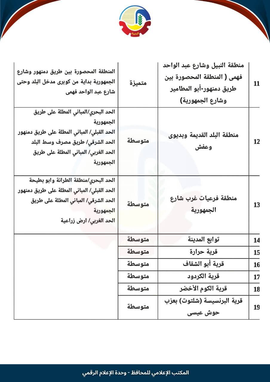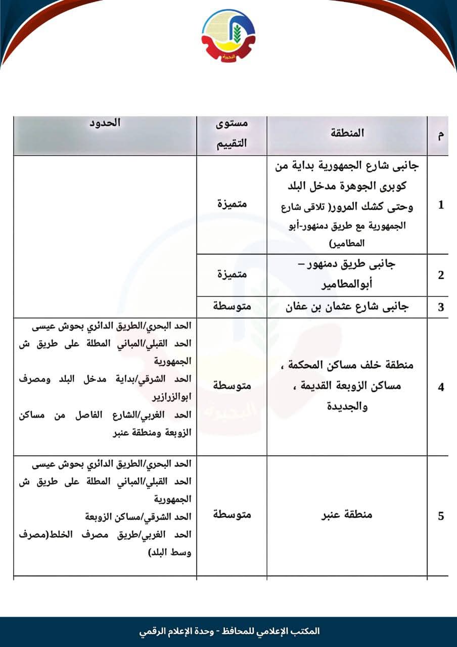 وفي هذا السياق، انتهت لجان الحصر والتصنيف بمركز ومدينة حوش عيسى من حصر وتصنيف المناطق التي تضم وحدات مؤجرة للغرض السكني والخاضعة لأحكام القانون، حيث تم تصنيف ١٩ منطقة سكنية، بواقع ٣ مناطق متميزة و١٦ منطقة متوسطة.