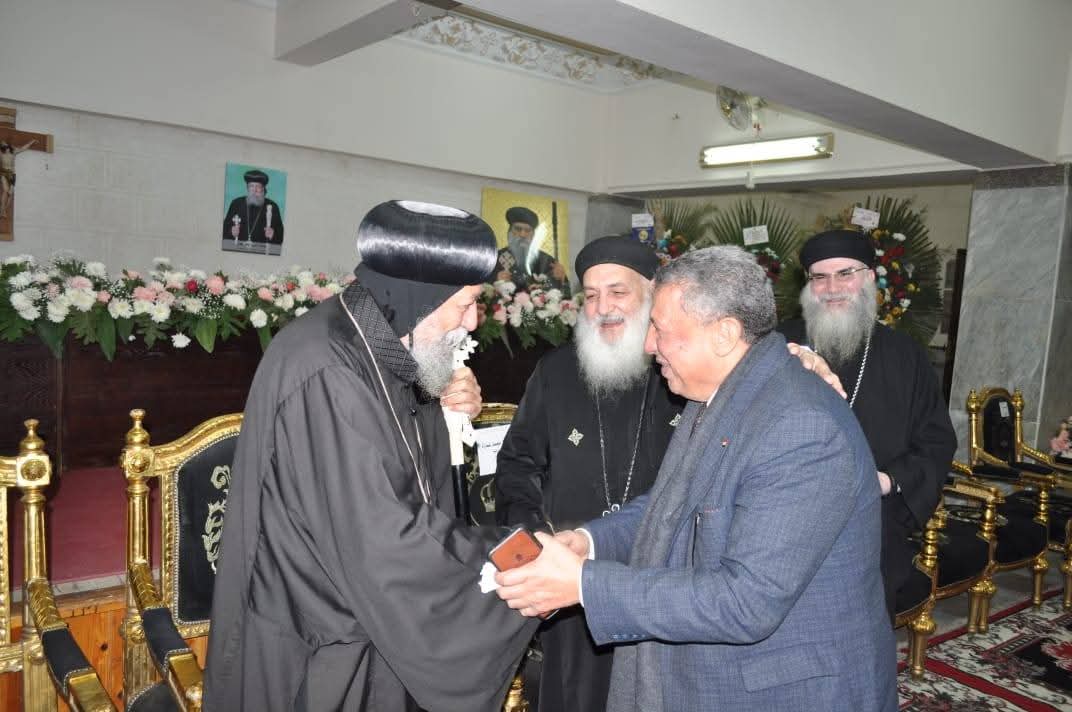 معربا عن خالص تهانيه القلبية بإسمه وبإسم جميع العاملين بقطاع التعليم بالبحيرة لنـيافة الأنبا إيلاريون ولجميع الاخوة المسيحيين شركاء الوطن