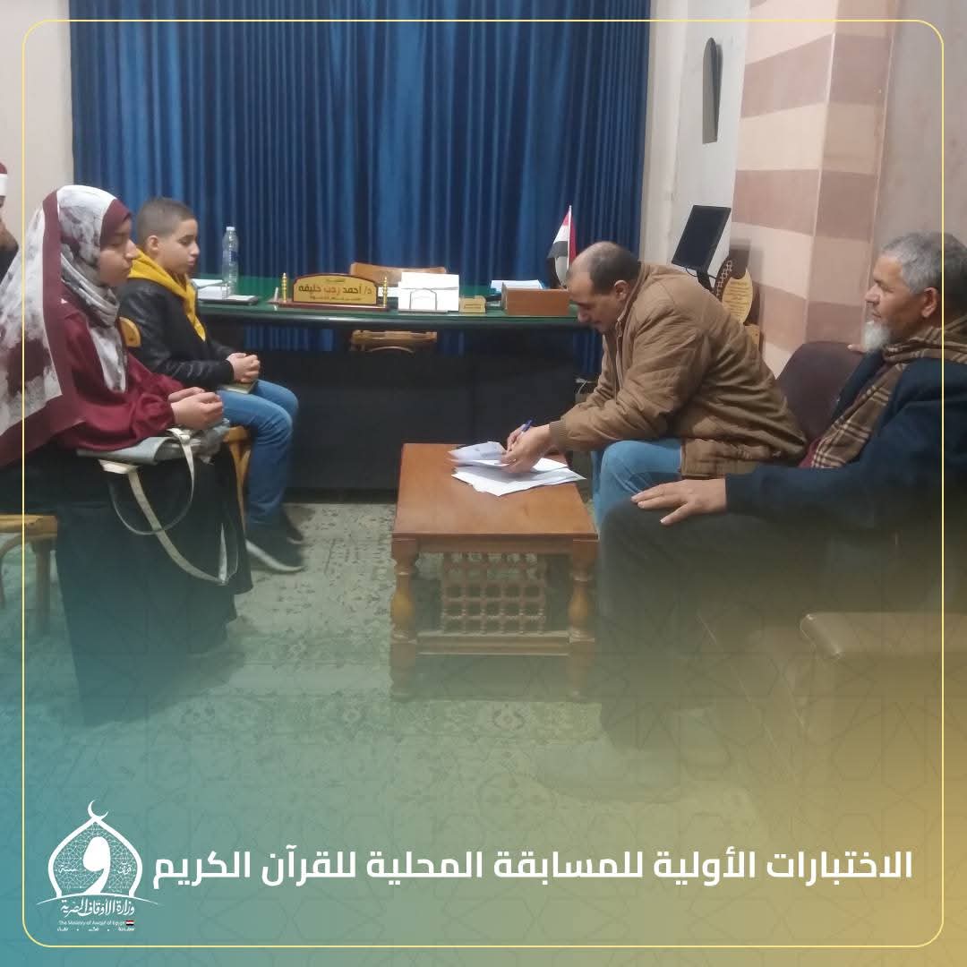 في إطار اهتمام وزارة الأوقاف بالعناية بكتاب الله تعالى وأهله، انطلقت اليوم الأحد الموافق 11 / 1 / 2026م الاختبارات الأولية للمسابقة المحلية للقرآن الكريم بمديرية أوقاف البحيرة، على أن تستمر حتى الخميس الموافق 15 / 1 / 2026م، وذلك تمهيدًا للتصفية النهائية للمسابقة.