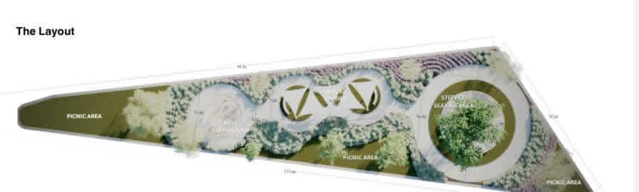 والحديقة على مساحة تزيد عن ١٠٠٠ متر مربع، ومن المقرر أن تضم مساحات خضراء وأماكن ترفيهية متكاملة وألعاباً للأطفال، بما يليق بالمواطنين ويحقق متنفساً آمناً ومناسباً لمختلف الفئات العمرية.