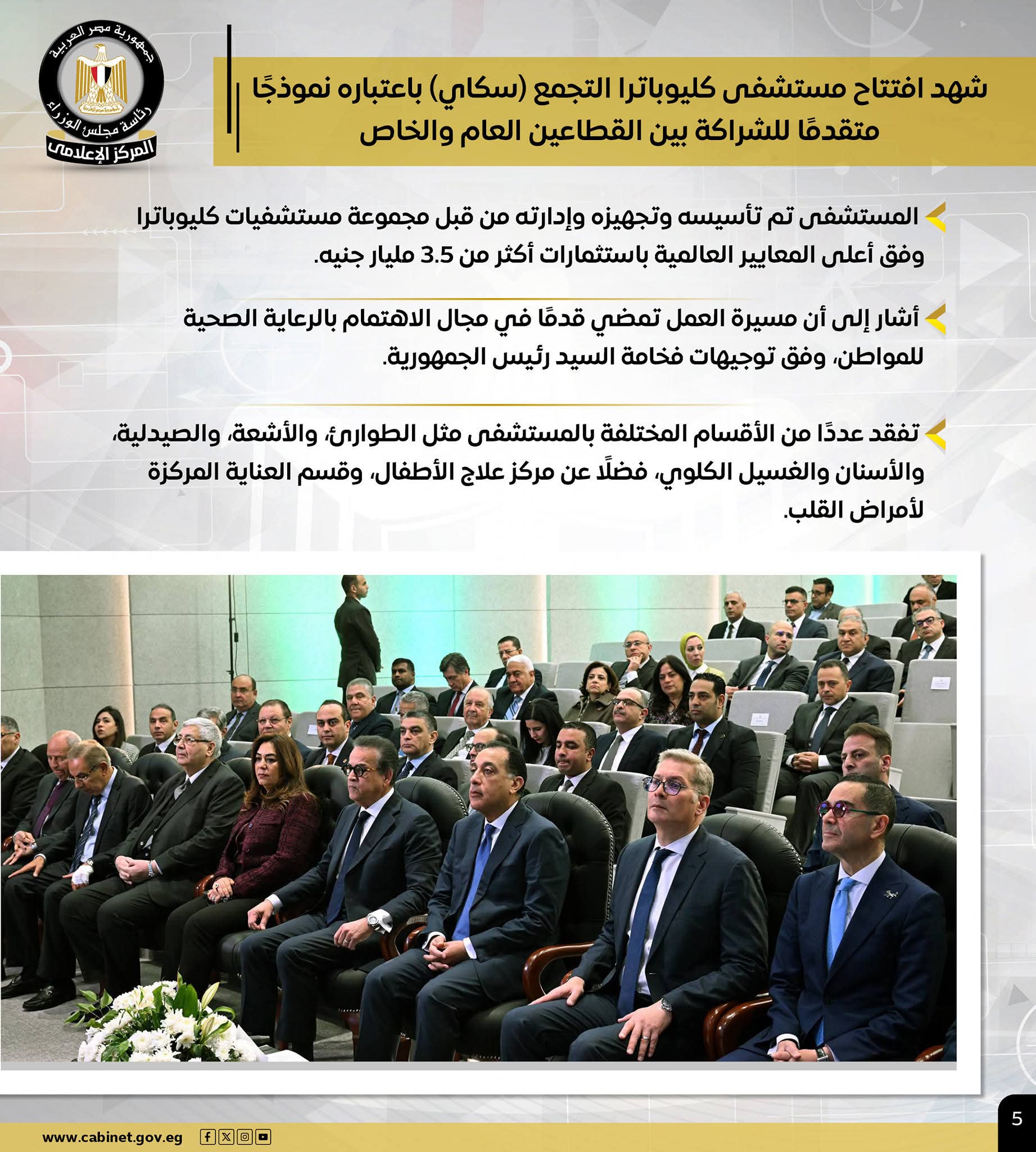- باستثمارات تتجاوز 3.5 مليار جنيه.. افتتاح مستشفى كليوباترا التجمع (سكاي) دعمًا لمنظومة الرعاية الصحية
