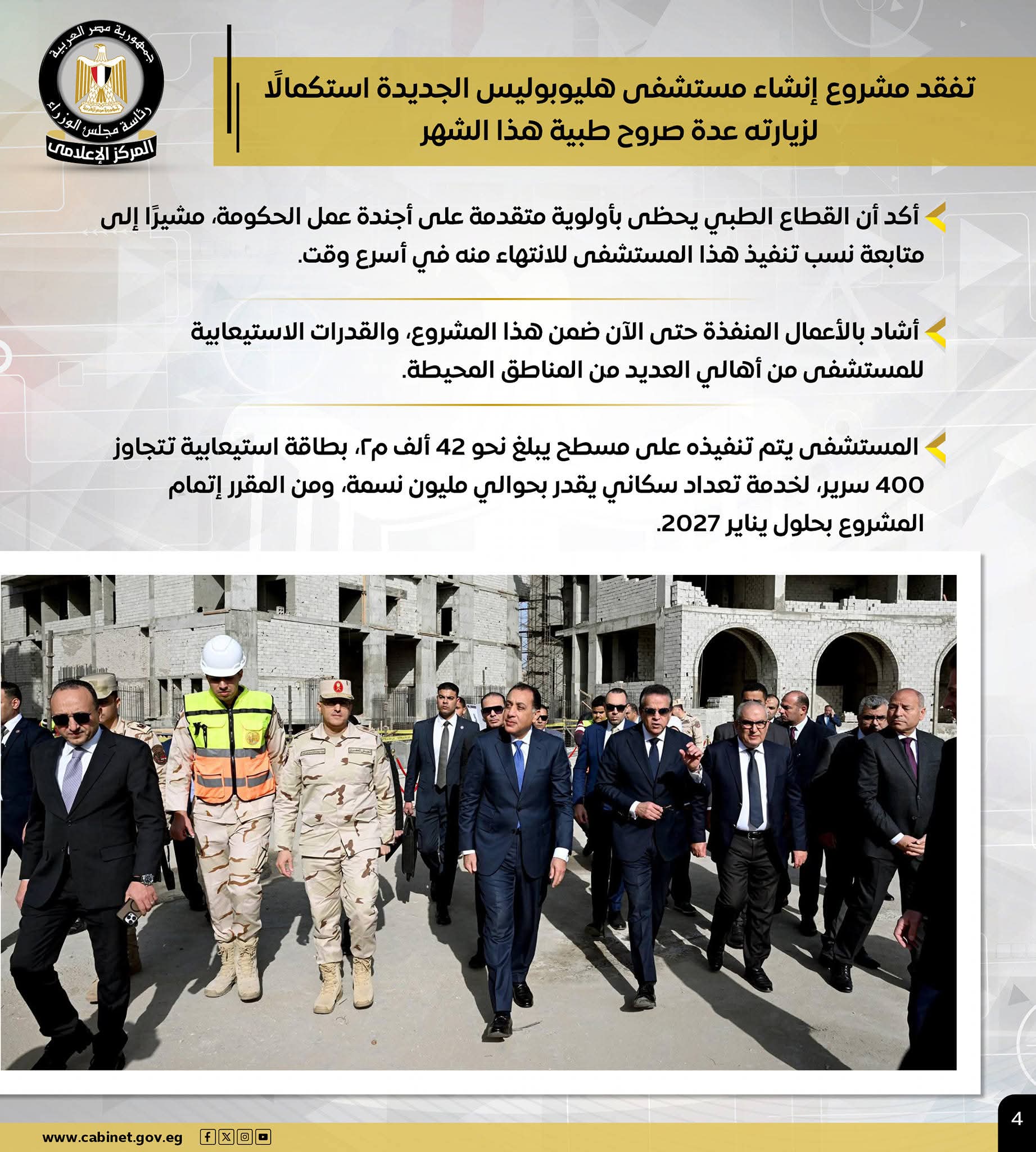 - خلال تفقده مشروع إنشاء مستشفى هليوبوليس الجديدة.. رئيس الوزراء: القطاع الطبي يحظى بأولوية متقدمة على أجندة عمل الحكومة