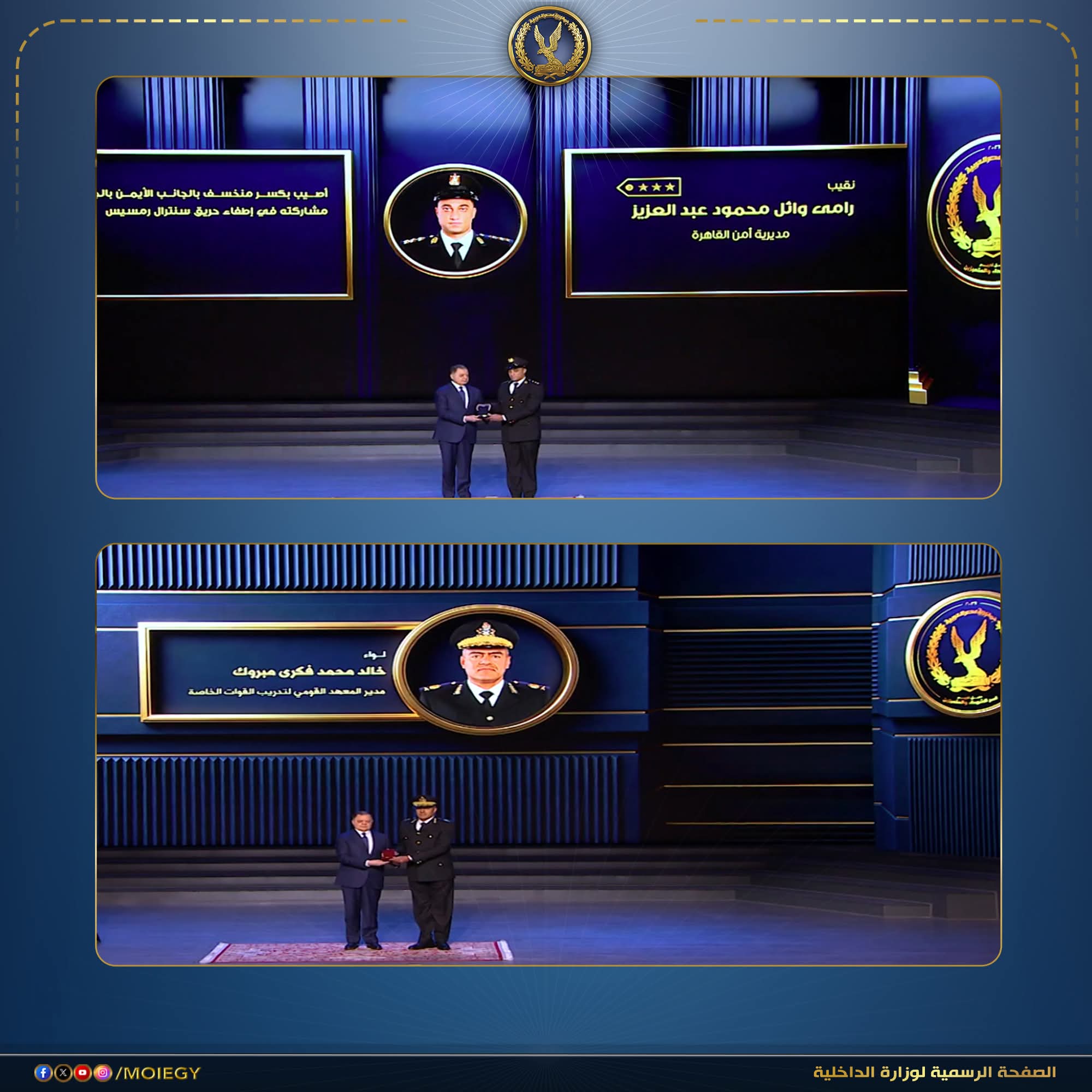 قام السيد / محمود توفيق - وزير الداخلية بتكريم عدد من أسماء الشهداء والمصابين والمتميزين من رجال الشرطة وتسليمهم الأنواط التى صدق السيد الرئيس/ عبدالفتاح السيسى - رئيس الجمهورية على منحها لهم تقديراً لما قدموه من جهود وتضحيات من أجل تحقيق رسالة الأمن السامية وإرساء دعائم الأمن والإستقرار ، وذلك خلال الإحتفال الذى أقامته الوزارة لهذه المناسبة.