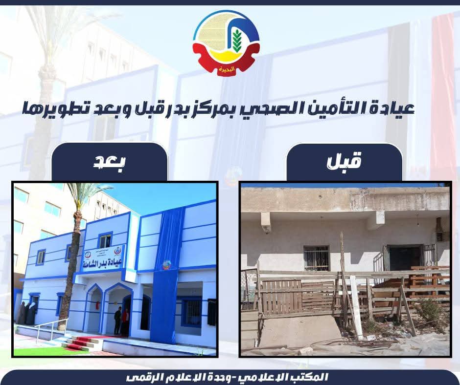 ٱفتتحت الدكتورة / جاكلين عازر - محافظ البحيرة، والدكتور/ أحمد مصطفى - رئيس الهيئة العامة للتأمين الصحي، مبنى عيادة بدر الشاملة الجديدة” بمركز بدر، بعد تطوير شامل أعاد للمكان كفاءته وجاهزيته لخدمة آلاف المنتفعين.