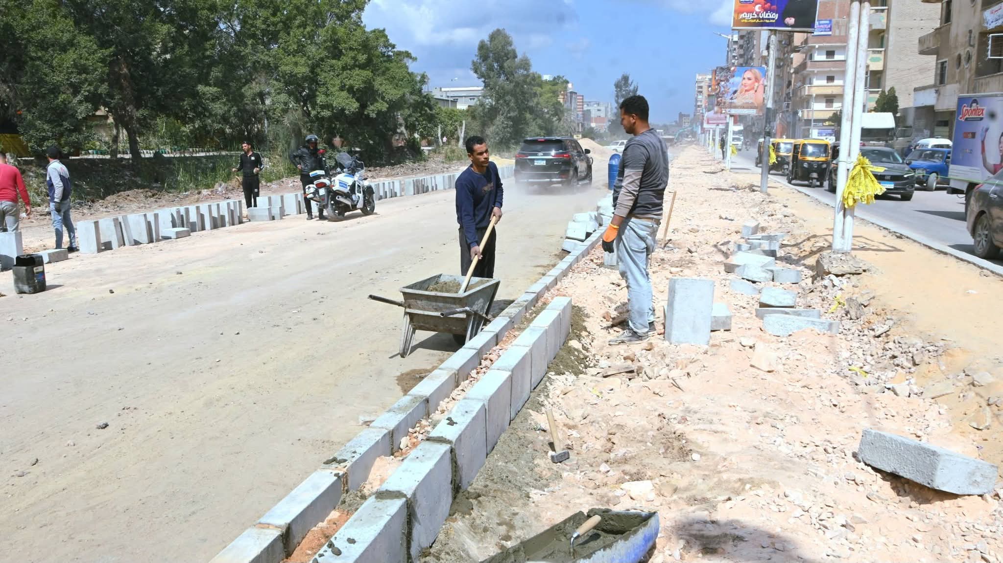 وتتابع أعمال تطوير وتوسعة شارع الحدائق لتحقيق السيولة المرورية وتحسين المظهر العام للمدينة