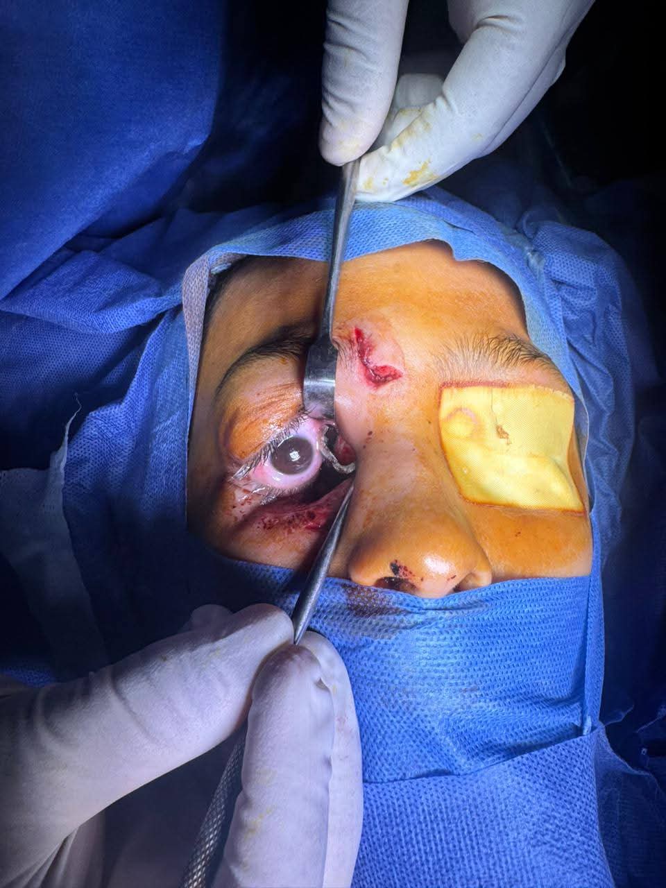 وقد أُجريت الجراحة تحت إشراف الدكتور مينا ظريف رئيس قسم الجراحة والدكتور كمال الشرقاوي، رئيس وحده جراحة الوجه والفكين وأورام الرأس والرقبة، وبالتنسيق مع الدكتور أحمد جابر حسانين، وبمشاركة فريق وحدة جراحة الوجه والفكين الذي ضم الدكتور محمود عبد الغني، والدكتور محمود فهمي، والدكتور عادل أشرف، والأطباء المقيمين محمد رأفت ورامي رضا، إلى جانب فريق جراحة العيون تحت اشراف الدكتور الاحمدي حمد السمان رئيس القسم والذي ضم الدكتورة. ميرفت زيدان والدكتور محمد عبده سعيد، والاطباء المقيمين طبيب. السيد محمد، وطبيبة. علياء محمد. الي جانب الدكتورة عواطف محمد بقسم جراحة الانف والاذن والحنجرة، والدكتور محمد اسماعيل قسم جراحة المخ والاعصاب.
